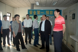 人大副主任崔丙亮(右二)、副市長郭茹(左二)一行在煤氣儲配站視察
