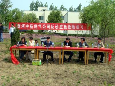 "漯河公司訊 為確保奧運會舉辦期間的燃氣供應安全,4月30日,漯河中裕公司按照該市反恐辦、市建委的指示,結合燃氣行業特性和自身實際情況,于其天然氣門站成功舉辦了反恐實戰演練,有效提高了自己在突發事件下的應變處置能力,贏得了市建委、反恐辦領導的充分肯定。