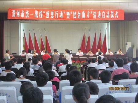漯河公司訊 8月16日,由漯河市工商聯、市總商會聯合在漯河市民營企業中發起的“民企助才”活動正式啟動。以科學發展觀為指導,以民企感恩社會、回報社會為主線,以打造工商聯工作品牌、支持貧困大學生成才為目標,活動旨在展示全市民營企業心系群眾、勇擔責任、無私奉獻新形象的同時,為漯河經濟社會發展再做新貢獻。