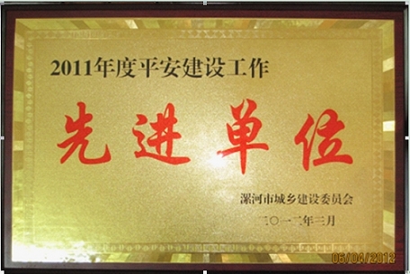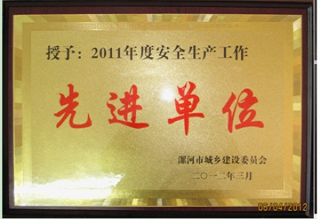"漯河公司訊 日前,在漯河市建委2012年法制穩定暨安全生產工作會議上,漯河公司被市建委授予2011年度安全生產工作先進單位、平安建設工作先進單位。