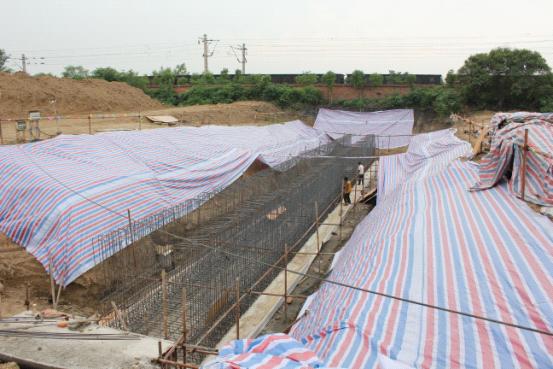 漯河市西氣東輸二線∮508高壓管線對京廣鐵路的穿越處位于漯河至西平段(鐵路里程為K823+295,管道里程K8+000)。由于京廣鐵路是貫通中國南北的重要交通干線,為在保障工程建設質量的同時確保其行車安全,穿越工程擬通過建護涵的方式下穿京廣鐵路,與京廣鐵路正交。其中,護涵主筋規劃采用HRB335鋼筋制作成2*2米框架涵,采用頂進法施工作業,兩端設D700mm檢查井,一側設DN100mm鍍鋅鋼管排氣管。目前正緊鑼密鼓地澆筑箱涵,全部工程計劃于7月底全部完工。