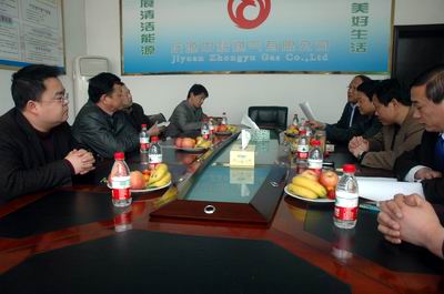 期間,濟源中裕副總經理黃留根就濟源城市基本情況及燃氣事業發展概況、濟源中裕的發展概況及近年來投資經營情況、下一步發展規劃等向考察組領導進行了介紹??疾旖M領導對濟源市城市燃氣事業的健康快速發展以及濟源中裕近年來取得的優異成績深表贊嘆,曹新華副局長還特別提到:自己經常關注中裕燃氣網站,對包括永城中裕在內的中裕燃氣成員企業的情況有所了解。并指出永城中裕公司近年來為永城城市建設工作做出了很大的貢獻,深得當地政府與民眾的好評。通過永城、濟源兩地近年燃氣事業的發展,讓人深切地感受到中裕燃氣的確是一家實力雄厚、很負責任、前途遠大的企業。
