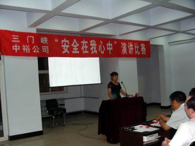 "三門峽公司訊 為通過多種形式的有益嘗試以協助廣大干職員工于潛移默化之間將“安全”意識銘刻心中,6月30日晚,三門峽中裕公司于其四樓會議室內成功舉辦了一場以“安全在我心中”為主題的演講比賽。