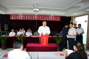 會上,山東省建設工會副主席畢世勇、臨沂市總工會副主席王向群、臨沂市建設局工會主任趙經建作了重要講話。講話指出:臨沂中裕燃氣有限公司工會的成立是公司全體員工政治生活中的一件大事,對于維護員工合法權益,提高員工干事創業的積極性,促進公司健康和諧發展起到了良好的推動作用。希望臨沂中裕第一屆工會委員會加強自身建設,將工會建設成服務于公司發展的紐帶,指導帶動廣大員工加強自身素質、愛崗敬業、樹立良好形象,為公司的發展壯大做出更大的貢獻。