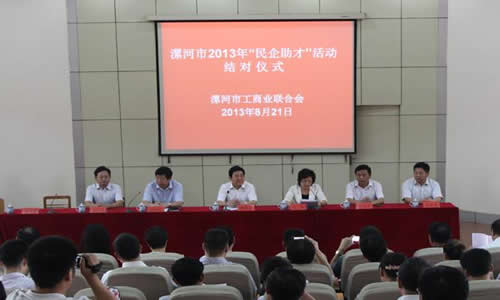 漯河公司訊 為大力弘揚中華民族扶貧濟困、尊師重教的優良傳統,充分發揮工商聯組織在履行社會責任、構建和諧漯河中的積極作用,8月21日,2013年“民企助才”活動結對儀式在漯河市實驗高中隆重舉行。市長曹存正出席儀式并講話。漯河市政府、市工商聯、市教育局相關領導,民營企業家代表及受助大學生參加了活動結對儀式。漯河公司羅青山董事長代表公司積極參加。