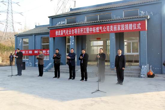 焦作公司訊 12月7日上午9點,“修武縣氣化云臺項目開工暨中裕燃氣美麗家園捐贈儀式”在云臺山景區舉行,修武縣副縣長臧振田、修武縣政協副主席高育才、岸上鄉黨委書記徐新勇,焦作中裕監事會主席王振新、副總經理臺銘俊、劉道成出席了開工暨捐贈儀式。