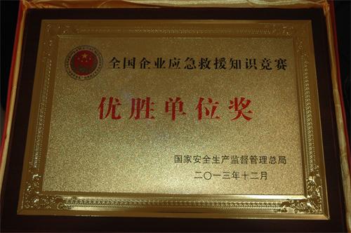 榮獲“全國企業應急救援知識競賽優勝單位獎”