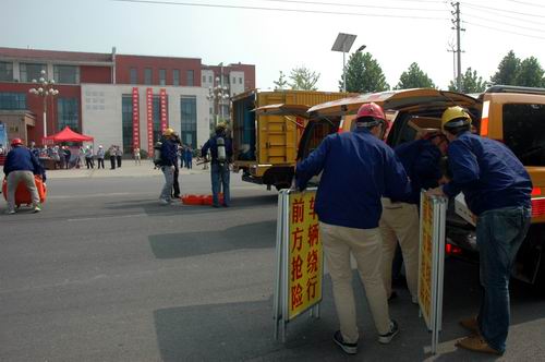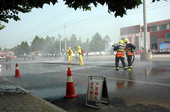 7月7日15時許,演練以“濟源市高新產業集聚區社會福利院門前,市政施工車輛意外挖裂次高壓天然氣地埋管道,大量的天然氣噴出地面”為背景展開,接到報警電話后,濟源公司迅速啟動搶險預案,疏散、搶險、消防、聯絡、救護、后勤、供應等小組火速奔赴現場,與此同時濟源市公安消防支隊、120急救中心等單位也派出救援車輛及人員趕赴現場……