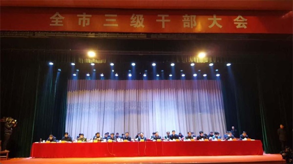 永城公司訊 近日,永城市三級(jí)干部大會(huì)在永城市影劇院隆重召開。永城市委書記孟慶勇,市委副書記、代市長(zhǎng)李中華出席會(huì)議并作重要講話。
