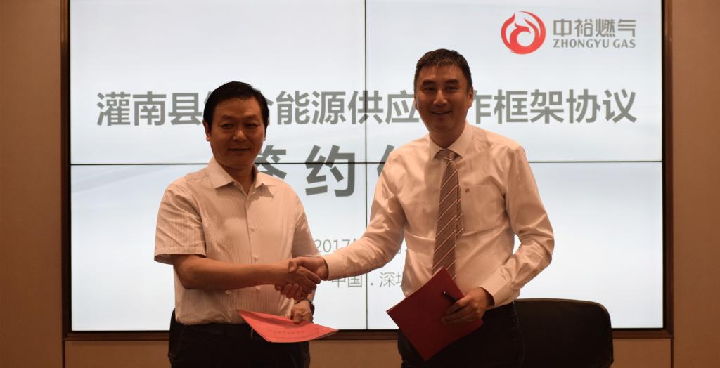 管理總部訊 11月2日,中裕燃?xì)馀c灌南縣城市建設(shè)投資發(fā)展有限公司(簡稱“灌南城投”)在深簽署《灌南縣綜合能源供應(yīng)合作框架協(xié)議》。灌南縣副縣長周文生、縣住建局局長兼灌南城投董事長嵇道峰、縣住建局副局長楊軍、縣商務(wù)局副局長孫耀清、縣化工園區(qū)副書記高長禮,集團(tuán)執(zhí)行董事兼總裁魯肇衡,集團(tuán)副總裁彭軍、盧迎九及相關(guān)領(lǐng)導(dǎo)出席簽約儀式。